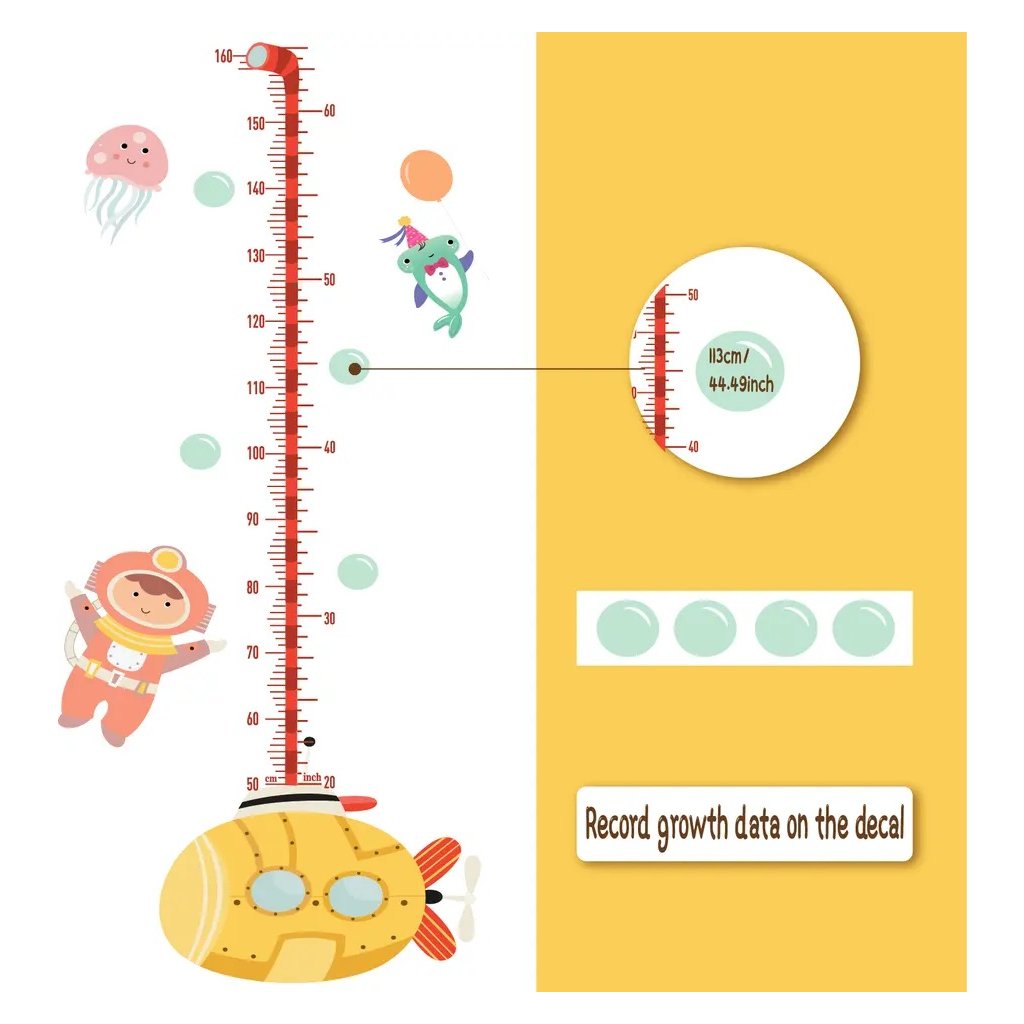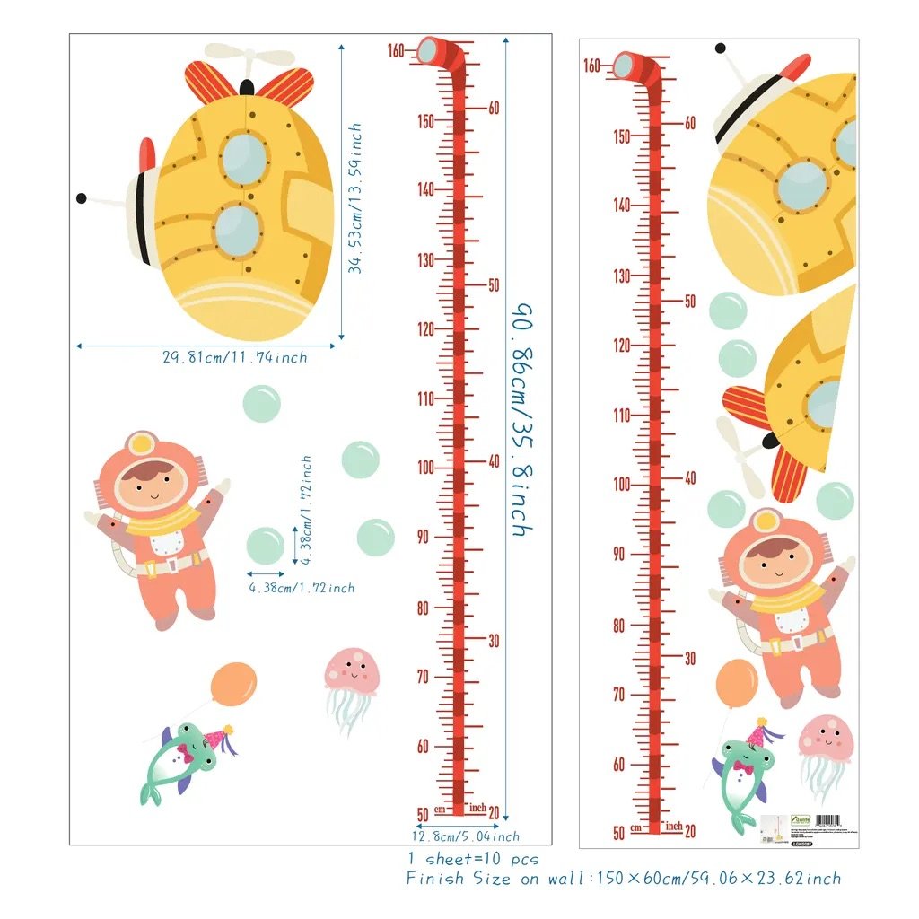 - Pakiet zawiera metr do wysokości 160 cm oraz łódź podwodną, nurków, zwierzęta morskie i bańki