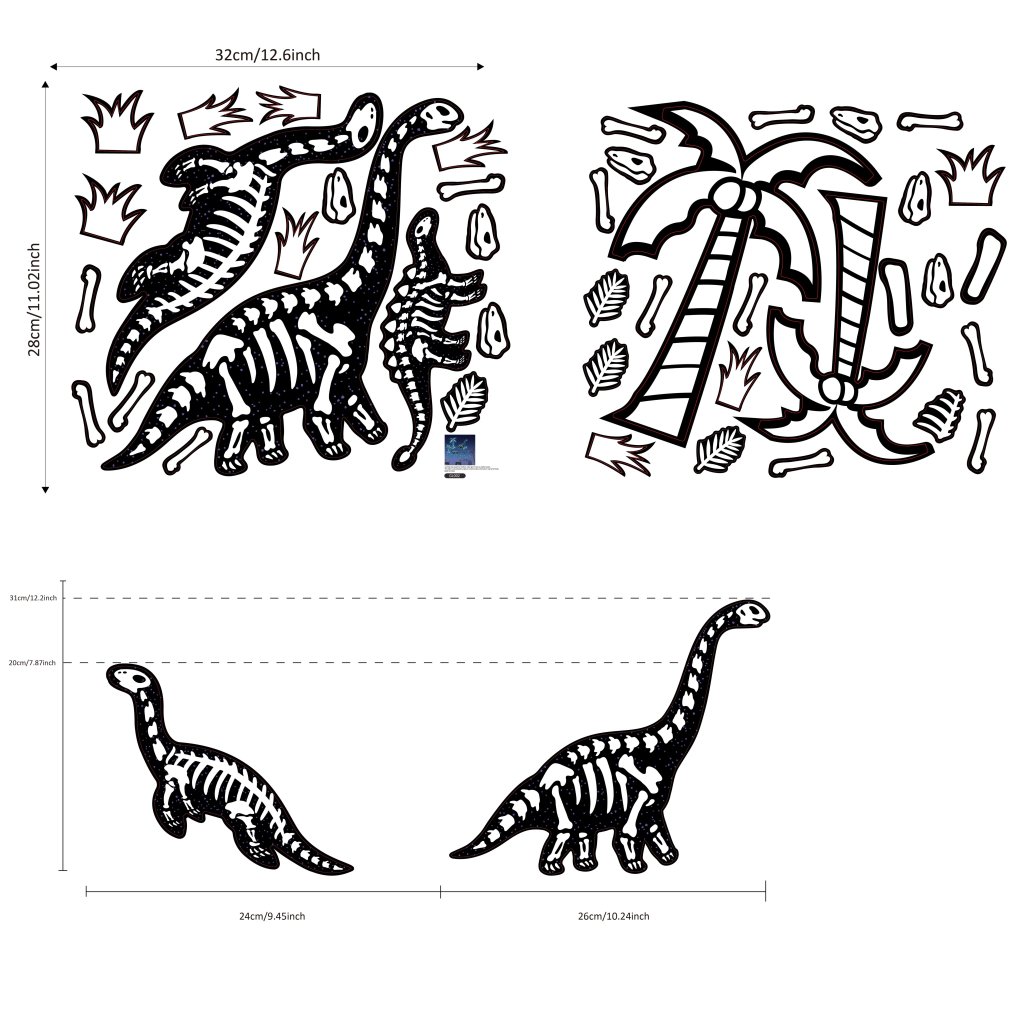 Świecące naklejki ścienne SZKIELET DINOZAURA
