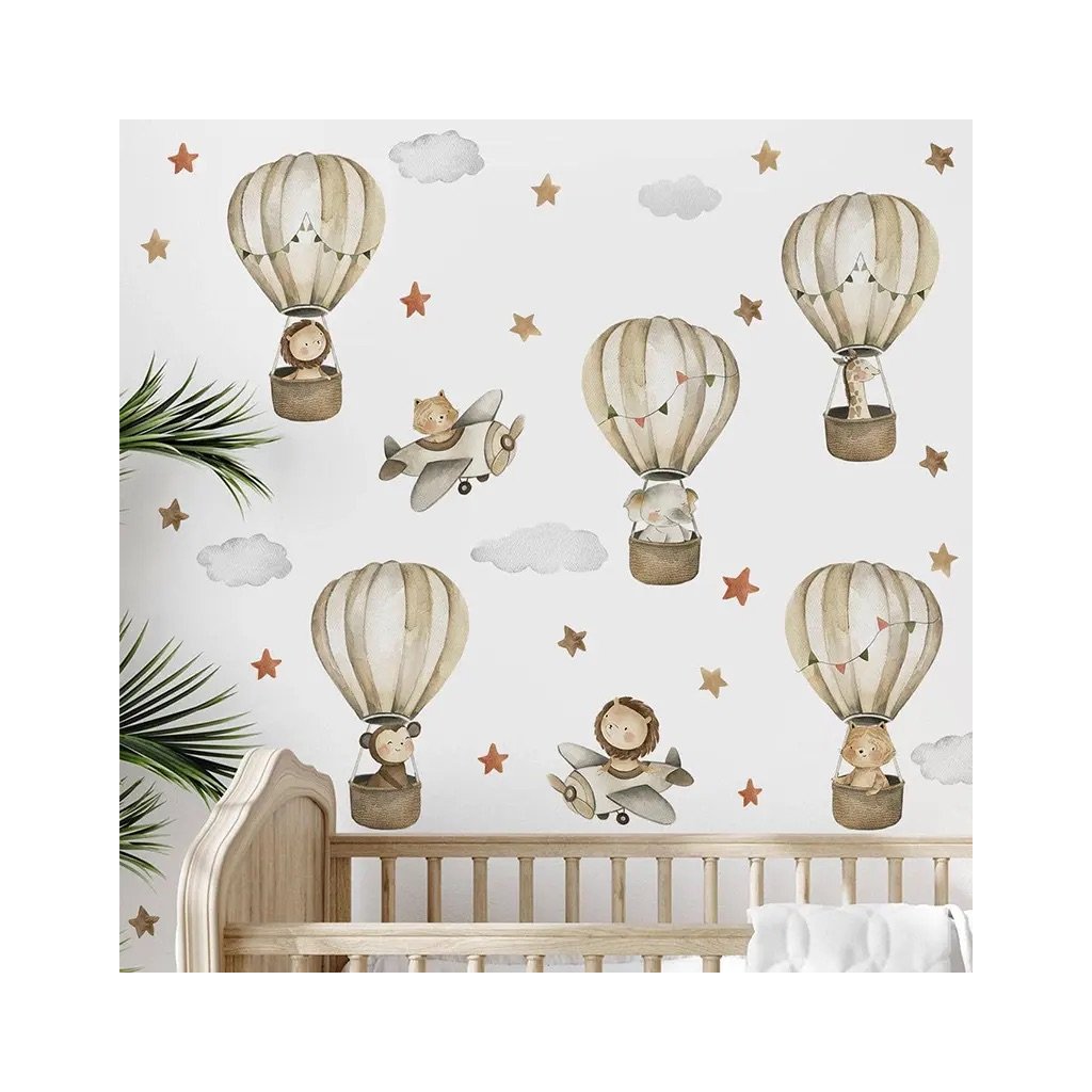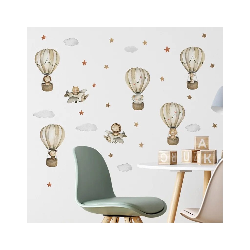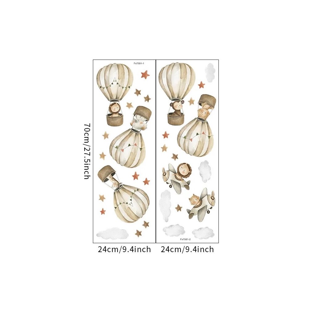 - Opakowanie zawiera zestaw naklejek o różnych rozmiarach na 2 arkuszach o wymiarach 24 x 70 cm cm, wielkość jednego balonu z małpką to 24 x 14 cm