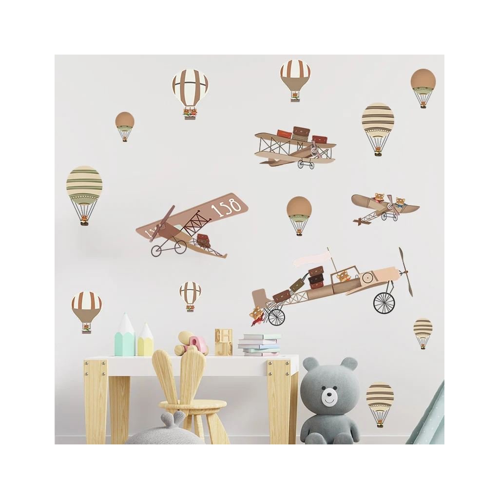Ten wspaniały zestaw naklejek ożywi pokój Twojego małego poszukiwacza przygód i przeniesie go z powrotem do śmiałych początków lotnictwa. Każdy element jest przesiąknięty historią i opowieściami, od majestatycznych balonów na ogrzane powietrze wznoszących się w niebo po podstępne samoloty o drewnianych skrzydłach i płótnie, które zdobiły niebo ponad sto lat temu. Dwupłatowce z klasycznymi śmigłami i dwoma skrzydłami umieszczonymi nad sobą są perełką tej kolekcji i z pewnością zainteresują każdego małego pilota. Te naklejki to doskonały sposób na pobudzenie ciekawości i zamiłowania dzieci do historii i technologii, jednocześnie dodając kolorowy i edukacyjny element do ich codziennego otoczenia.