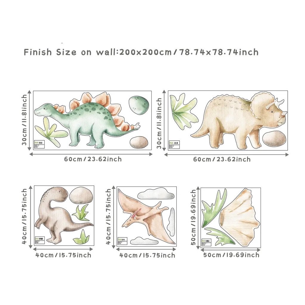 - Opakowanie zawiera zestaw naklejek o różnych rozmiarach, rozmiar po naklejeniu wynosi około 200 x 200 cm, wielkość poszczególnych elementów widać na zdjęciach