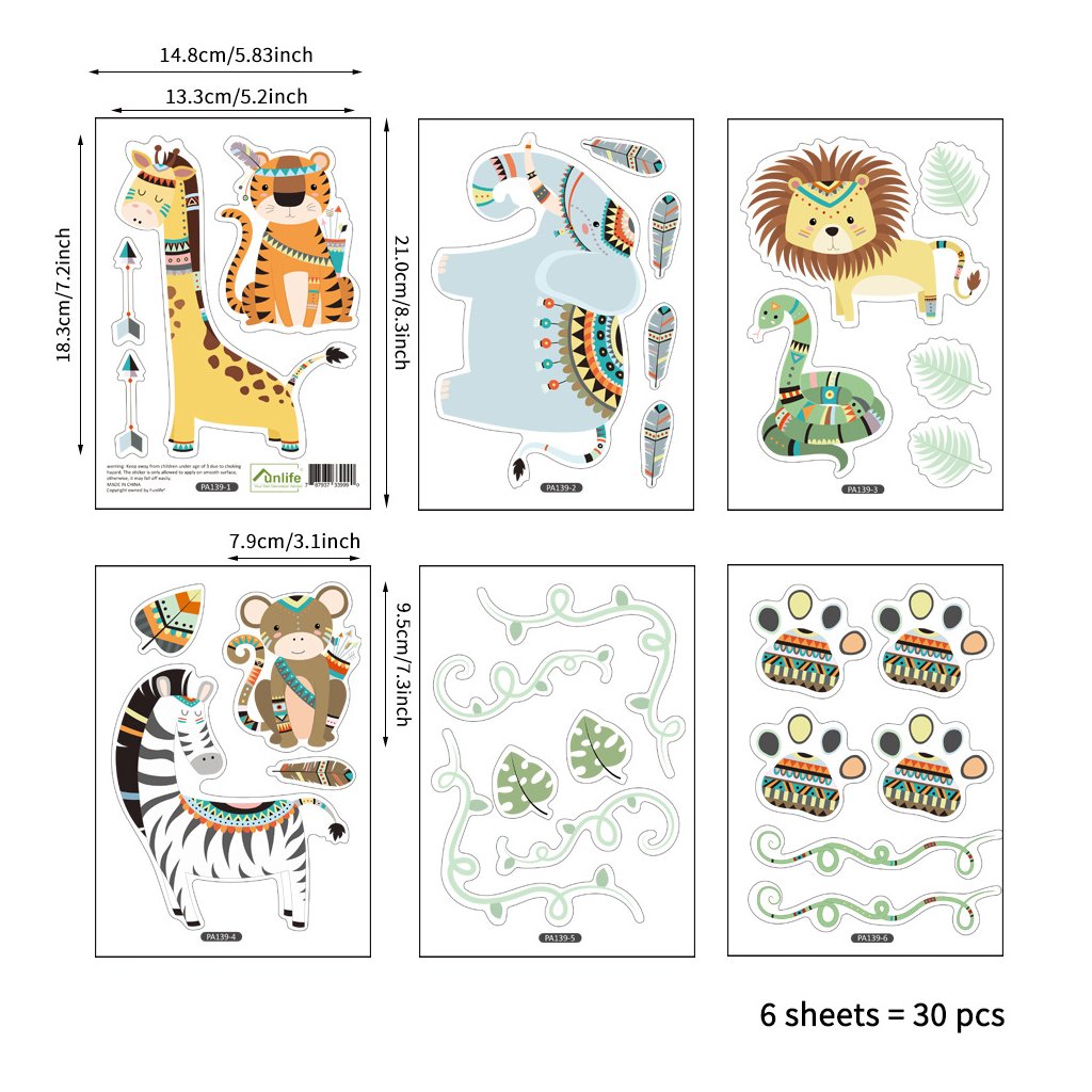 - Opakowanie zawiera 30 naklejek różnej wielkości - żyrafa ma 18,3 cm wzrostu