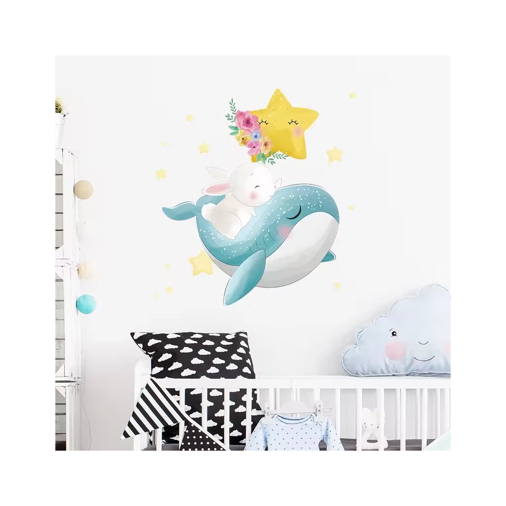 Naklejki ścienne KRÓLICZEK NA WIELORYBIE