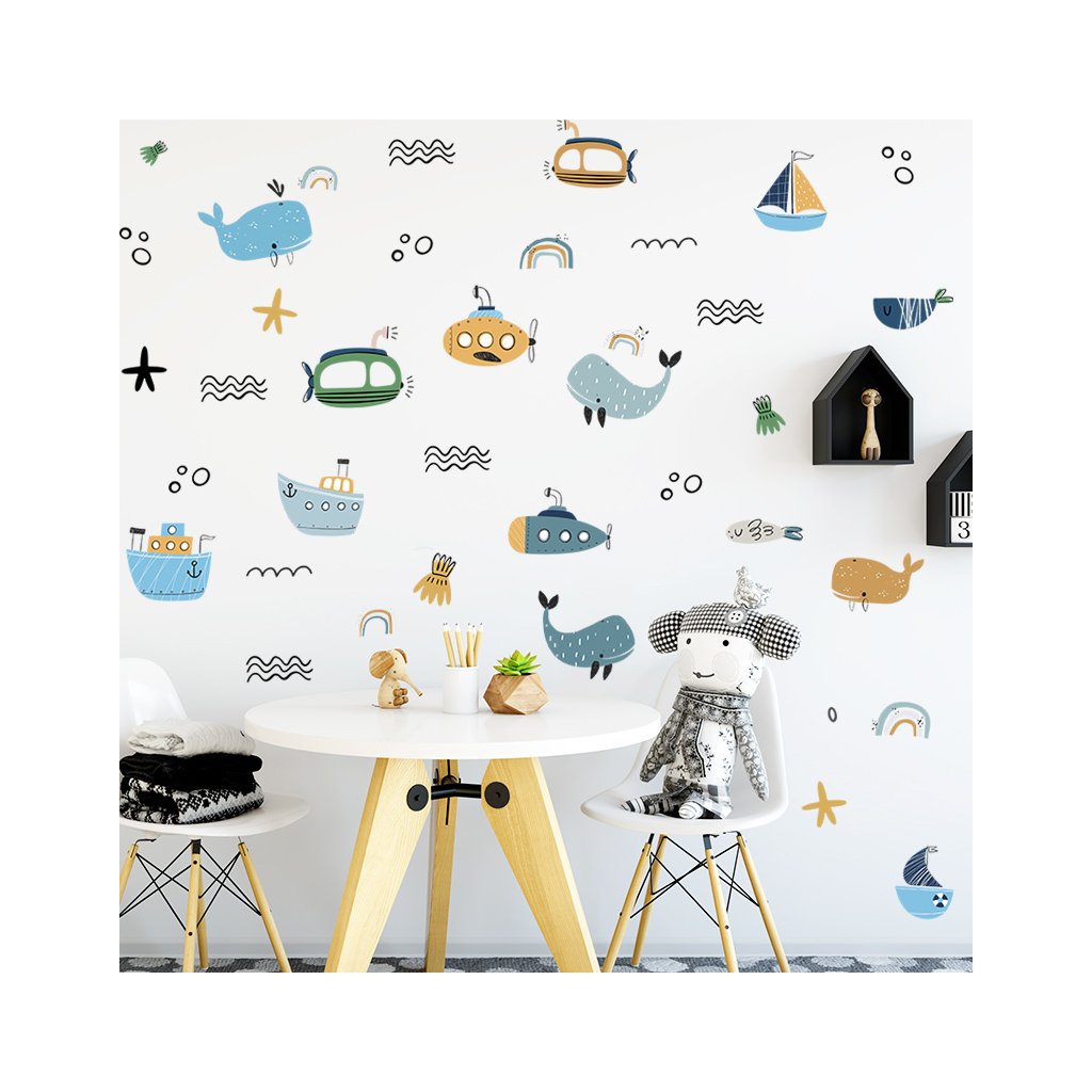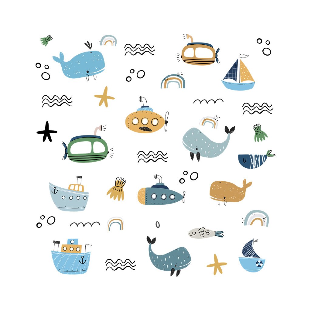 Naklejki ścienne ŁODZIE I WIELORYBY
