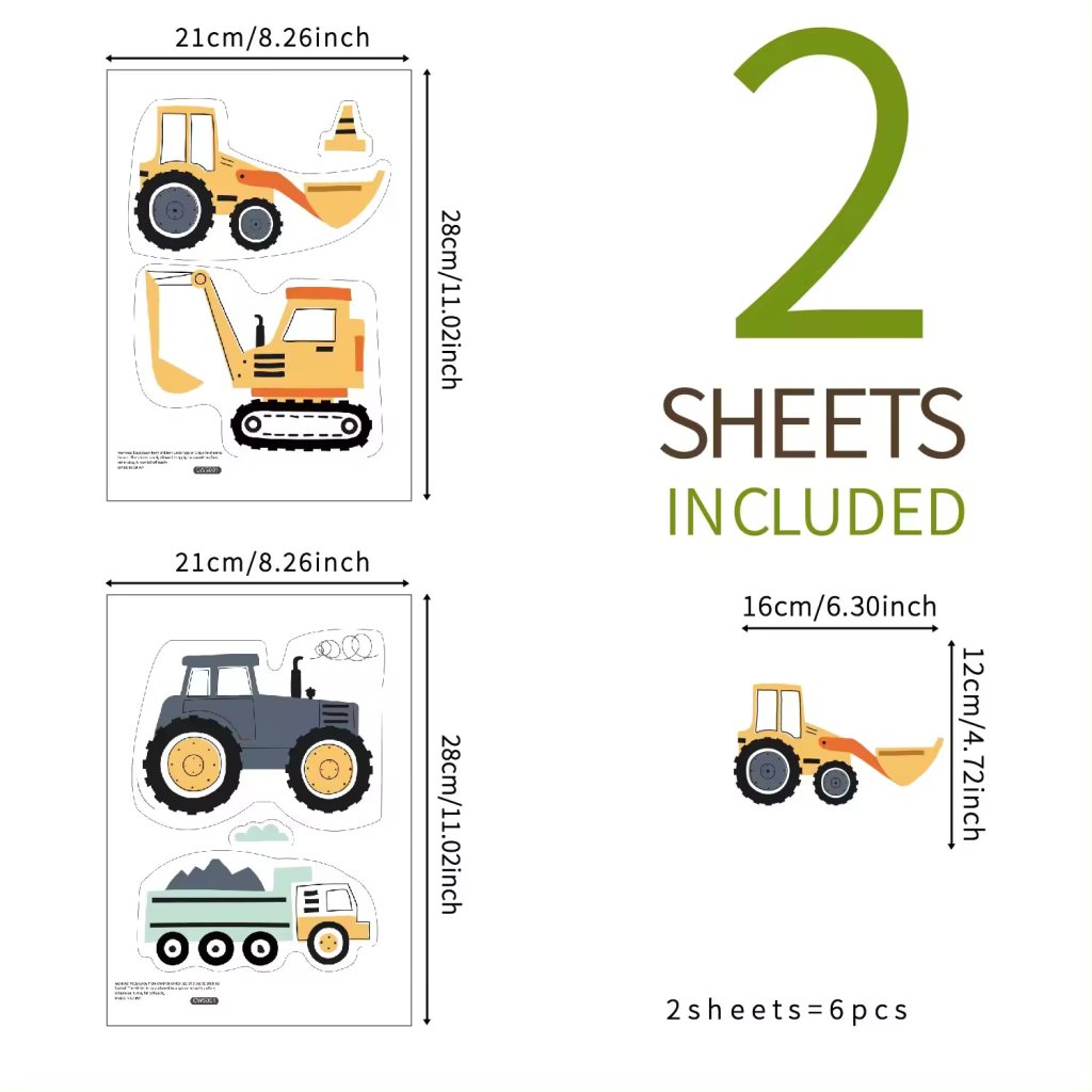 - Pakiet zawiera zestaw 4 samochodów na 2 arkuszach i pas polowy 200 x 10 cm, wymiary żółtej koparki to 16 x 12 cm