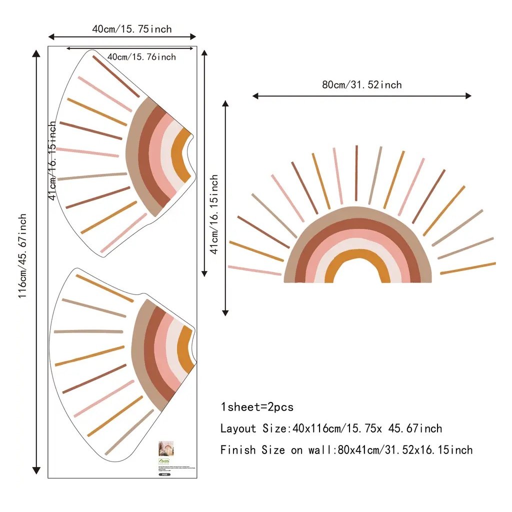 - Wynikowy rozmiar tęczy wynosi 41 x 80 cm, tęcza składa się z 2 części