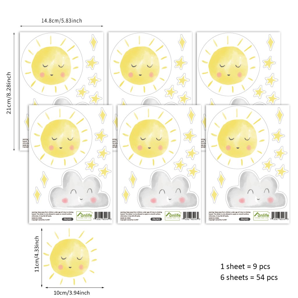 - Opakowanie zawiera 54 naklejki - wielkość jednego słońca to około 10 x 11 cm