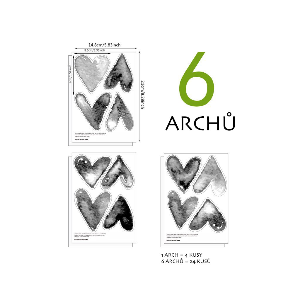 - Opakowanie zawiera 24 naklejki - wielkość jednego serca to około 8,5 x 9 cm