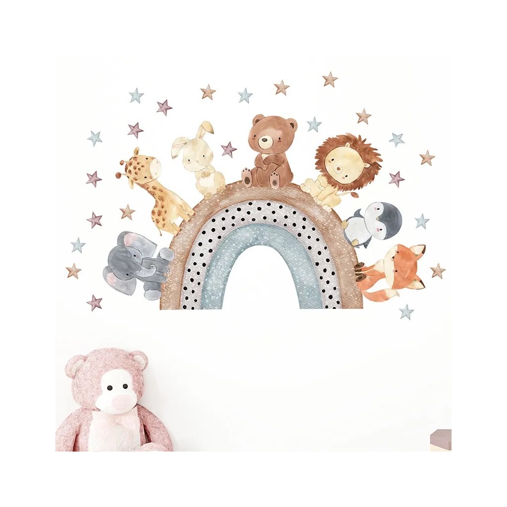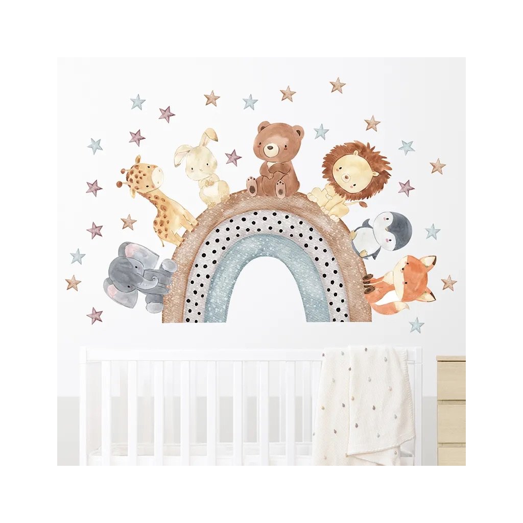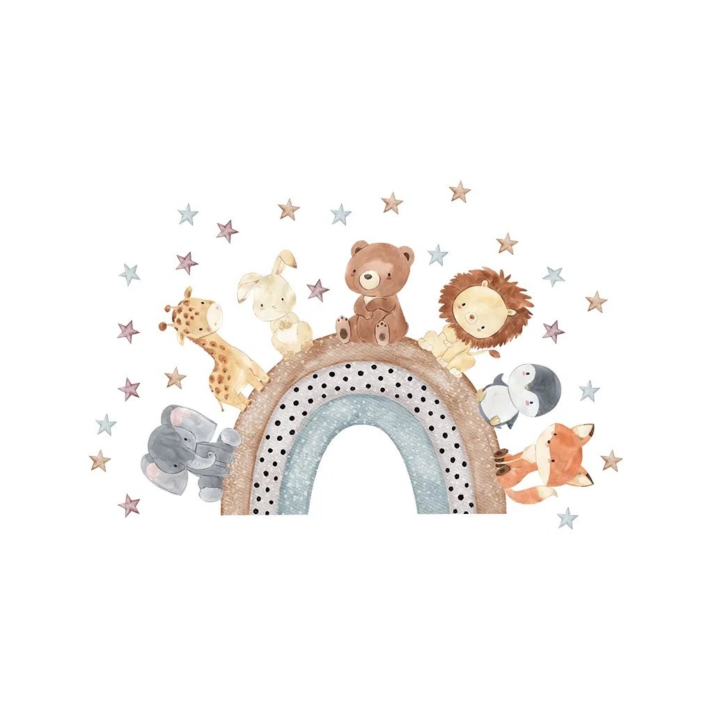 Naklejki ścienne TĘCZA KROPKOWANA ZE ZWIERZĄTKAMI