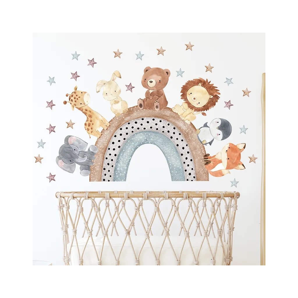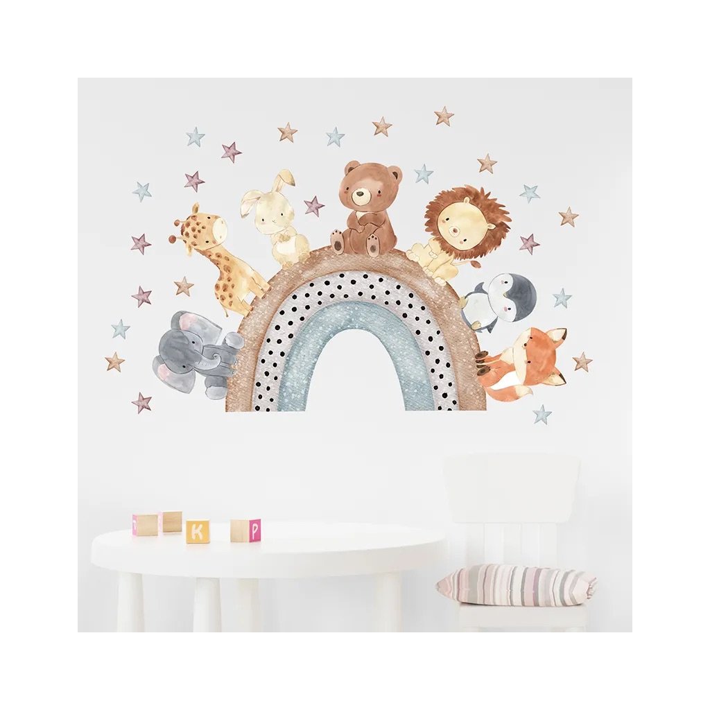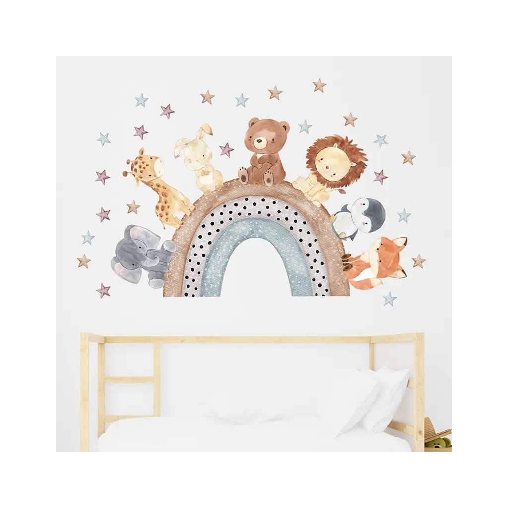 Naklejki ścienne TĘCZA KROPKOWANA ZE ZWIERZĄTKAMI