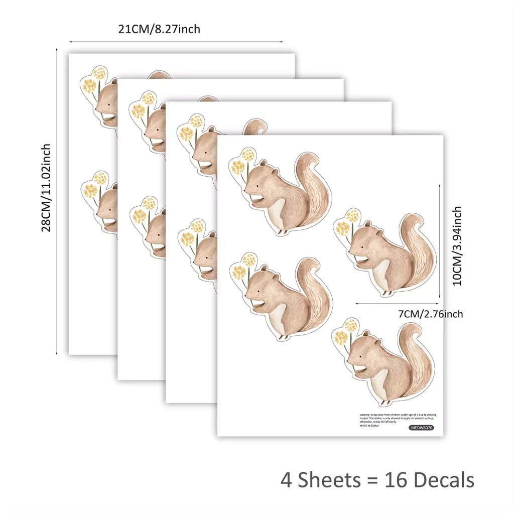 - Opakowanie zawiera zestaw 16 naklejek na 4 arkuszach, wielkość jednej wiewiórki to 10 x 7 cm