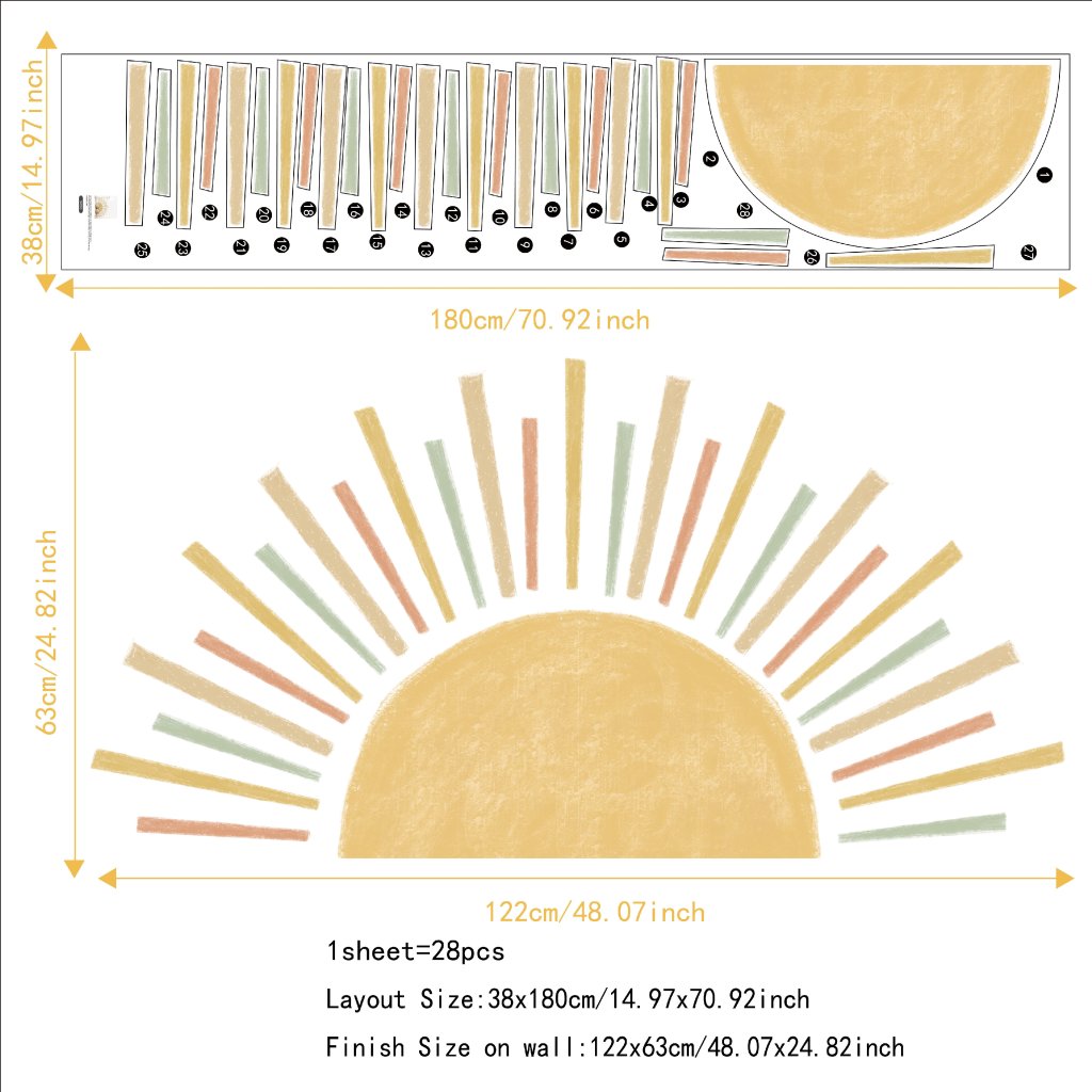 Piękna naklejka ze wschodem słońca dosłownie rozjaśni pokój dziecka.