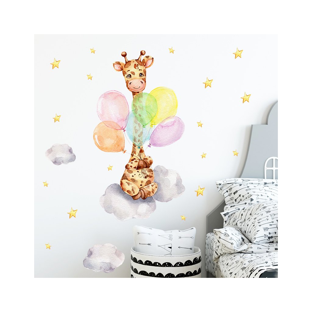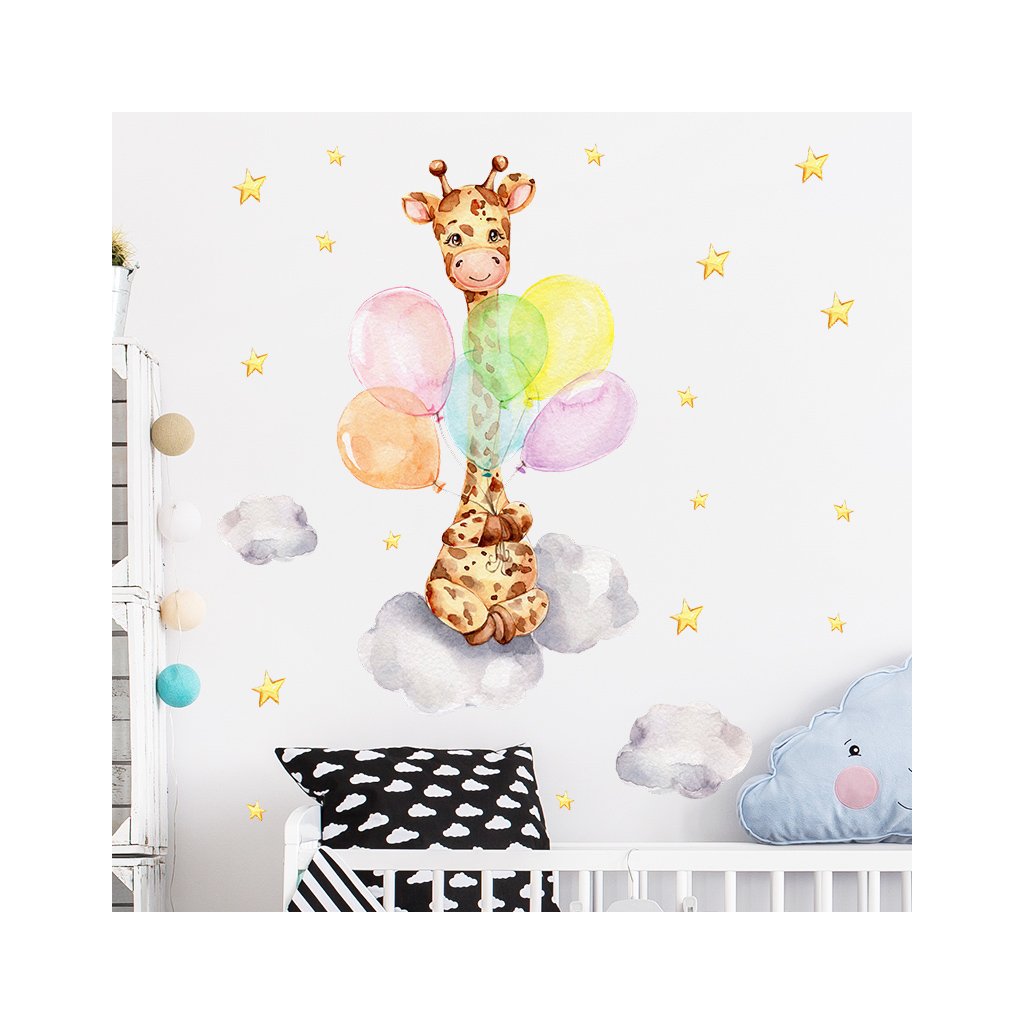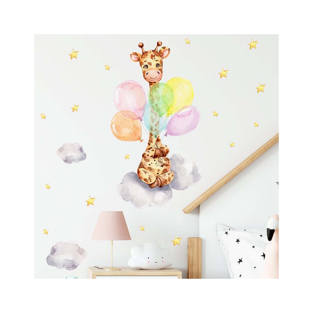 Naklejki ścienne ŻYRAFA Z BALONAMI