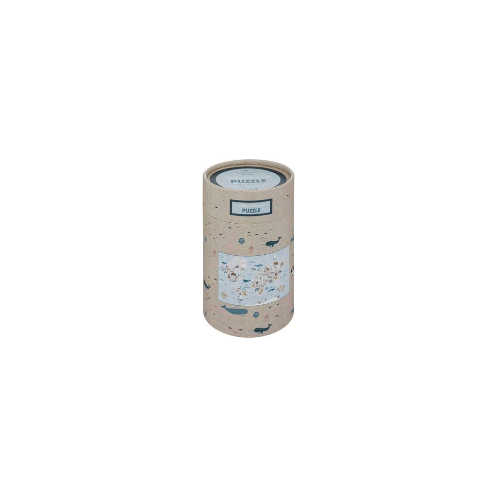 Piękna układanka z mapą świata ze zwierzętami zawiera 64 elementy i jest przechowywana w praktycznej tubie.