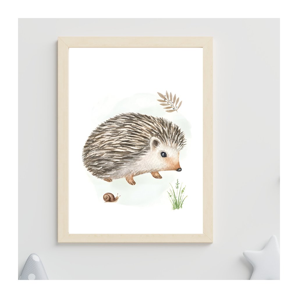 Uroczy obrazek z motywem jeża idealnie sprawdzi się w pokoju dziecięcym, salonie czy sypialni. Jeż jest pięknie realistyczny.