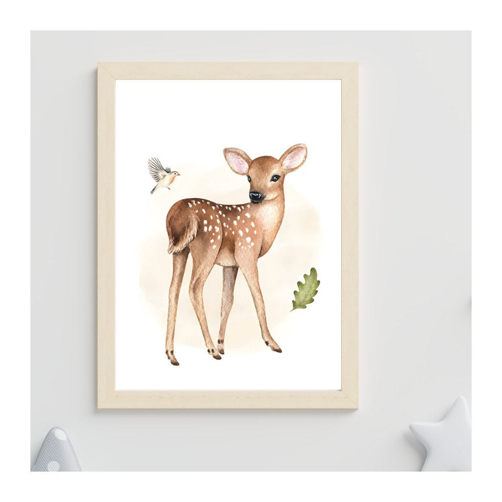 Uroczy obraz z motywem łani idealnie nadaje się do pokoju dziecięcego, salonu lub sypialni.