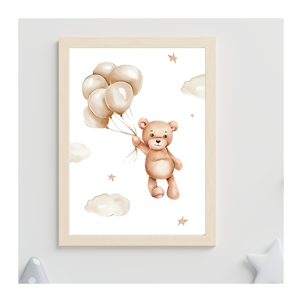 Uroczy obrazek z misiem z motywem baloników idealnie sprawdzi się w pokoju dziecięcym, salonie czy sypialni.